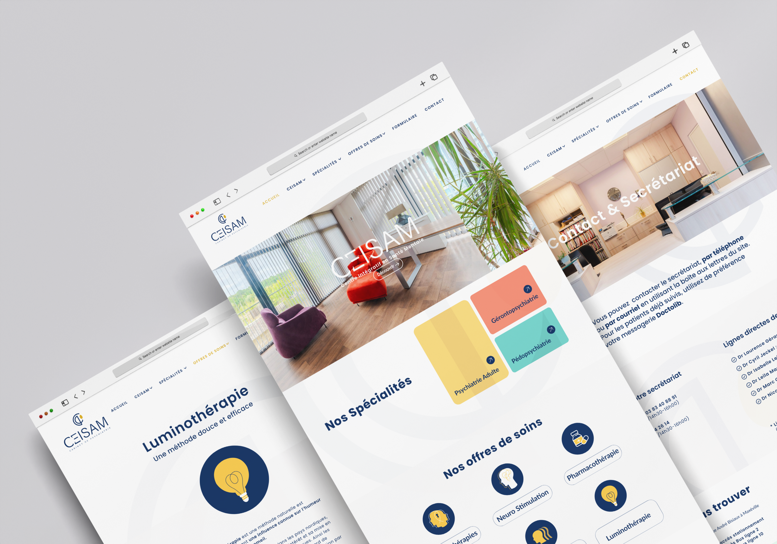 Le Cabinet de Psychiatrie CEISAM a souhaité refondre son site web vitrine afin de mieux refléter son expertise et ses valeurs. Le cabinet cherchait une identité visuelle sobre et professionnelle, capable de transmettre sérieux, bienveillance et clarté auprès de ses patients.